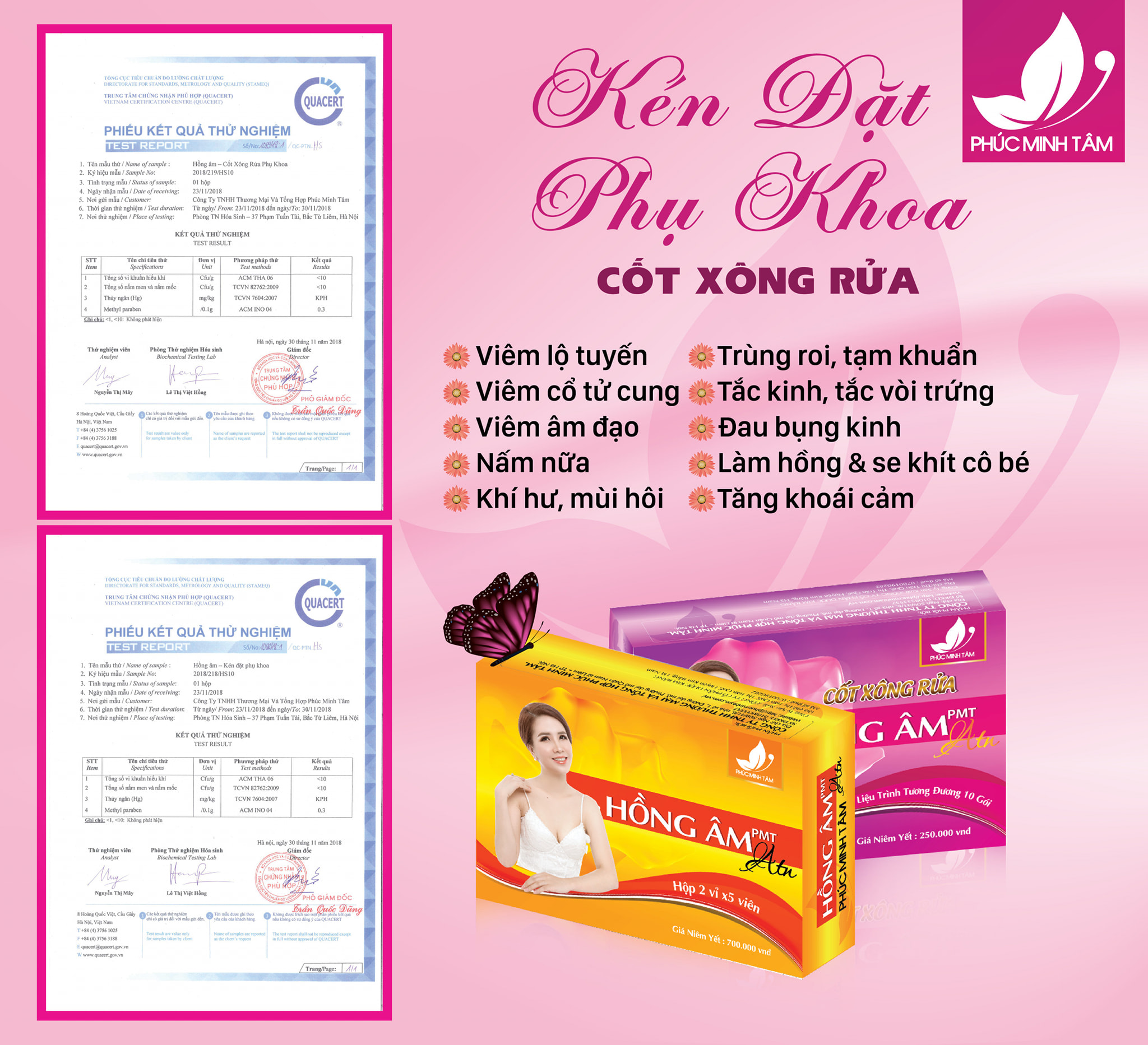 Thông tin chi tiết 2 sản phẩm phụ khoa Hồng âm ( PMT) phúc minh tâm quý khách hàng có thể xem tại đây :