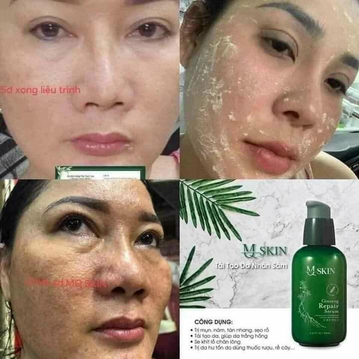Tái tạo da nhân sâm mqskin là sản phẩm chuyên đặc trị các bệnh lý về da như mụn, nám, tàn nhang, sẹo rỗ, da không đều màu, lỗ chân lông to, giúp thải độc cho những làn da bị nhiễm chì, cocticoit do dùng mỹ phẩm chứa chất tẩy, kem trộn, thuốc rượu trong thời gian dài.