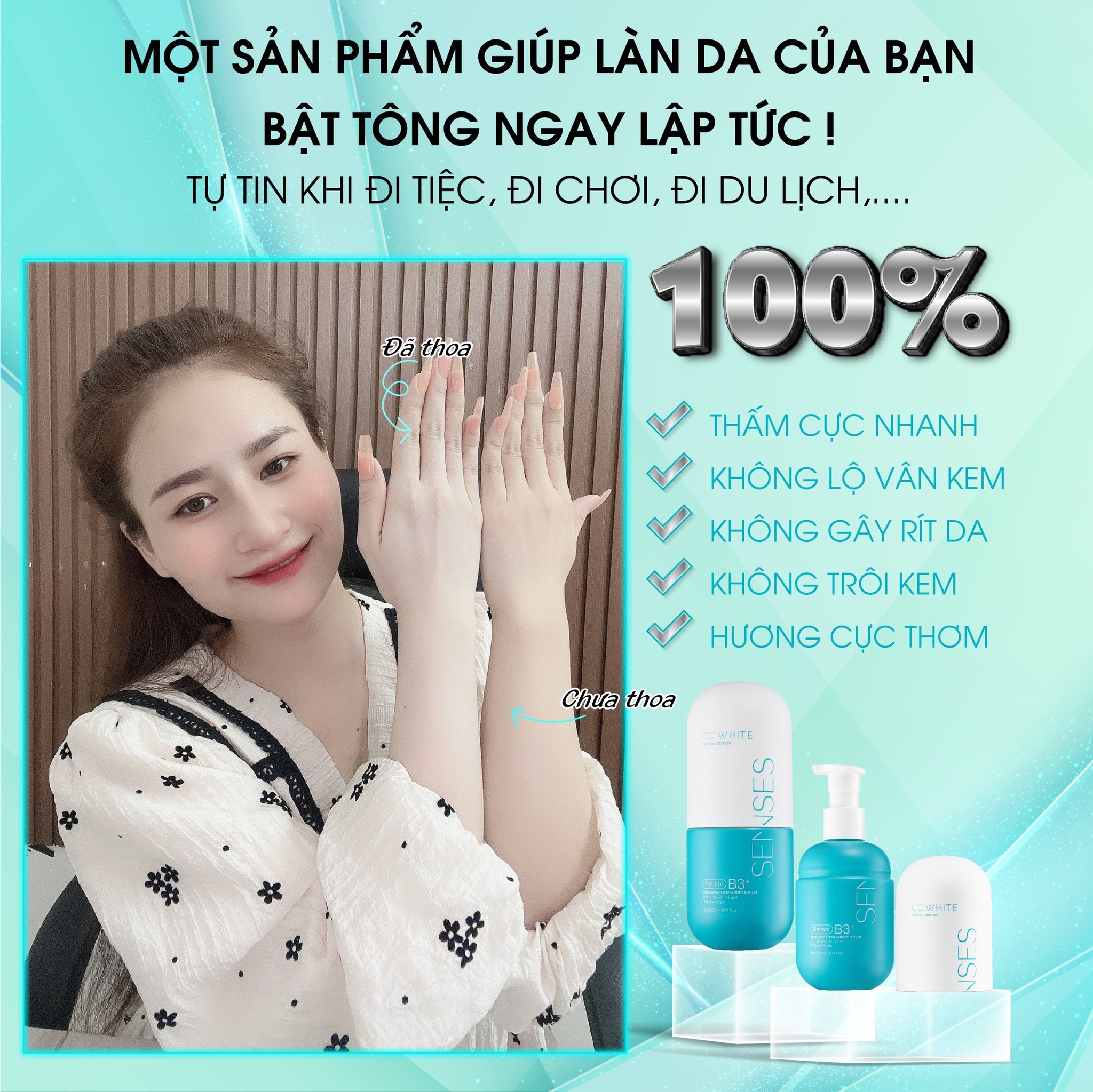 Vậy thì cấy trắng body Senses Cc White chính là chân ái. Nhanh tay sở hữu siêu phẩm này để cảm nhận sự thay đổi của làn da chỉ sau 7 ngày nhé.