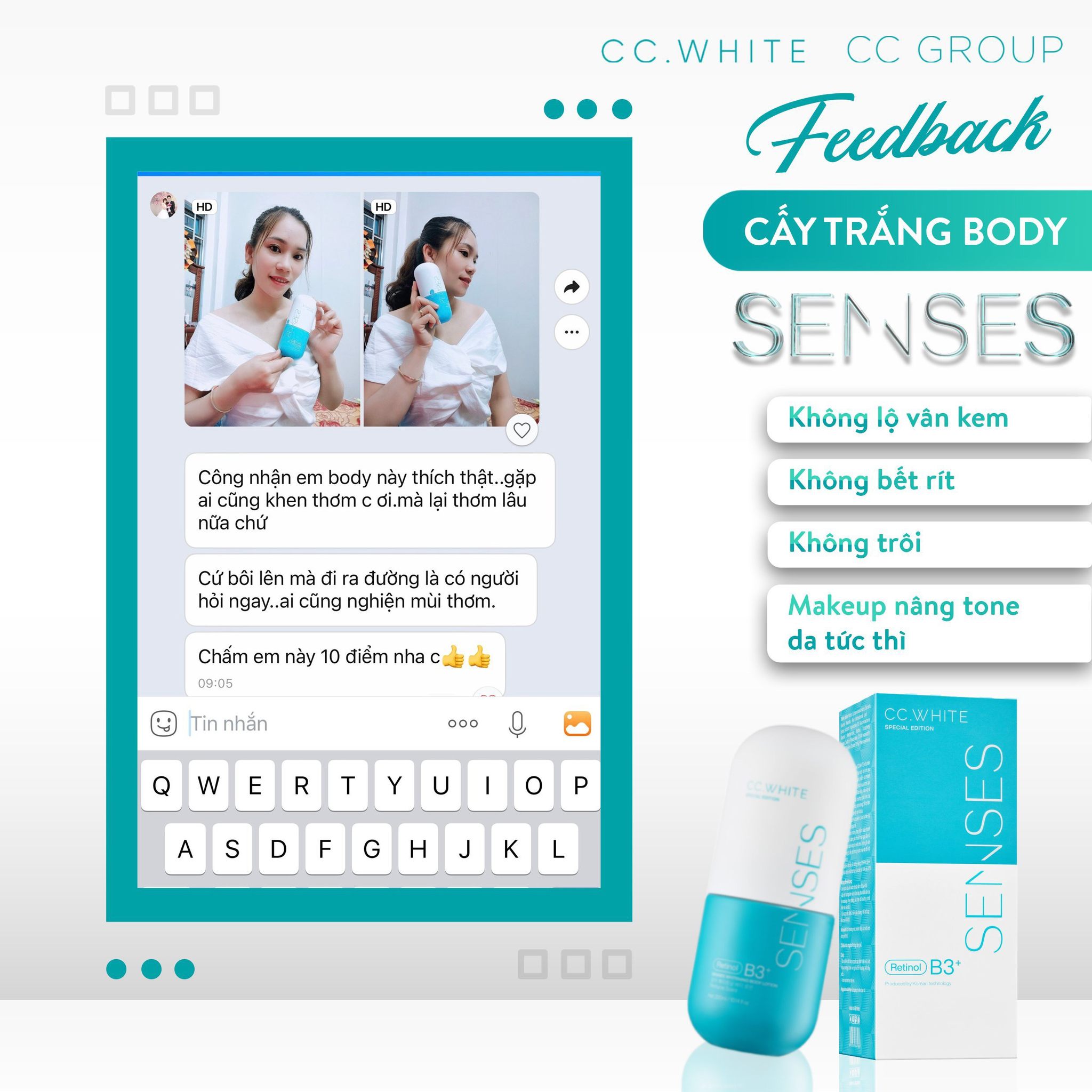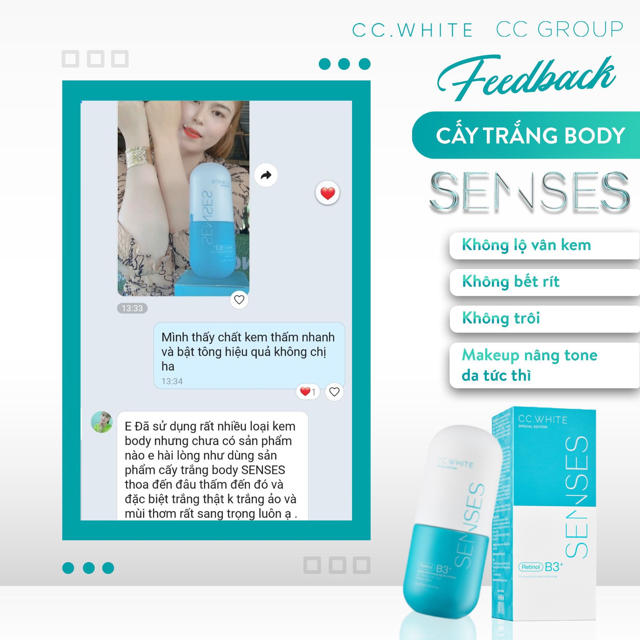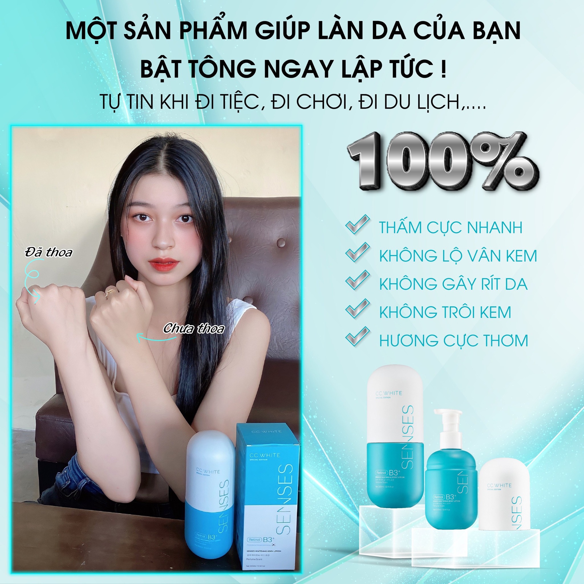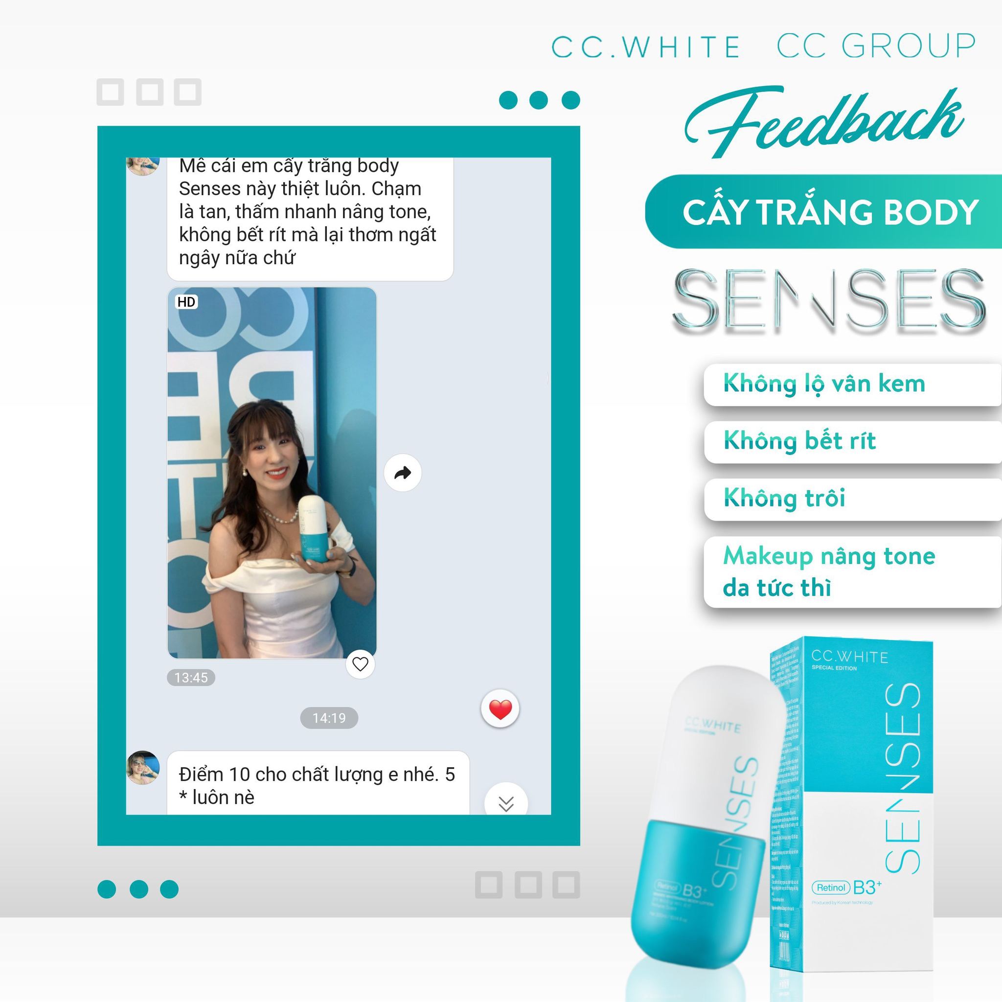 Vậy thì cấy trắng body Senses Cc White chính là chân ái. Nhanh tay sở hữu siêu phẩm này để cảm nhận sự thay đổi của làn da chỉ sau 7 ngày nhé.