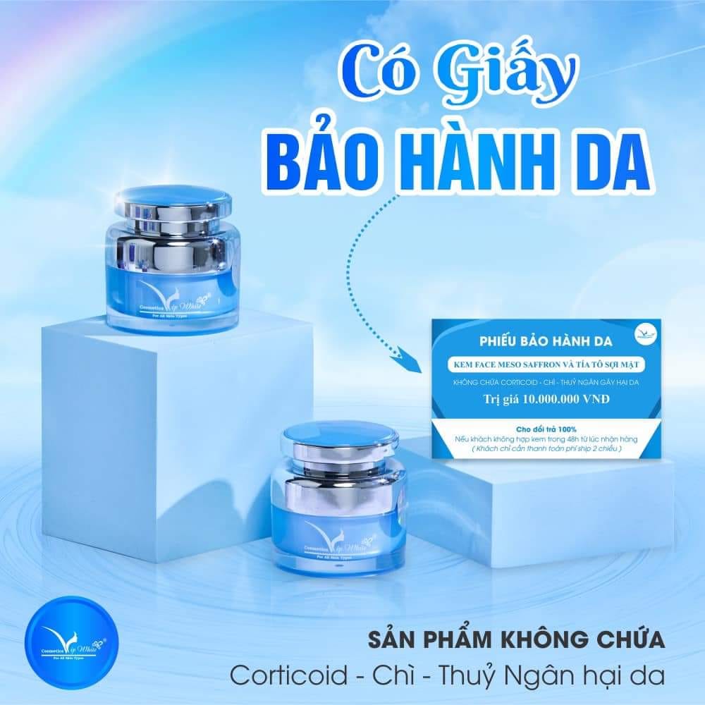 KEM FACE MESO SAFFRON VIP WHITE Phục hồi da , làm trắng da siêu đỉnh , nâng cơ trẻ hoá mờ thâm sạm
