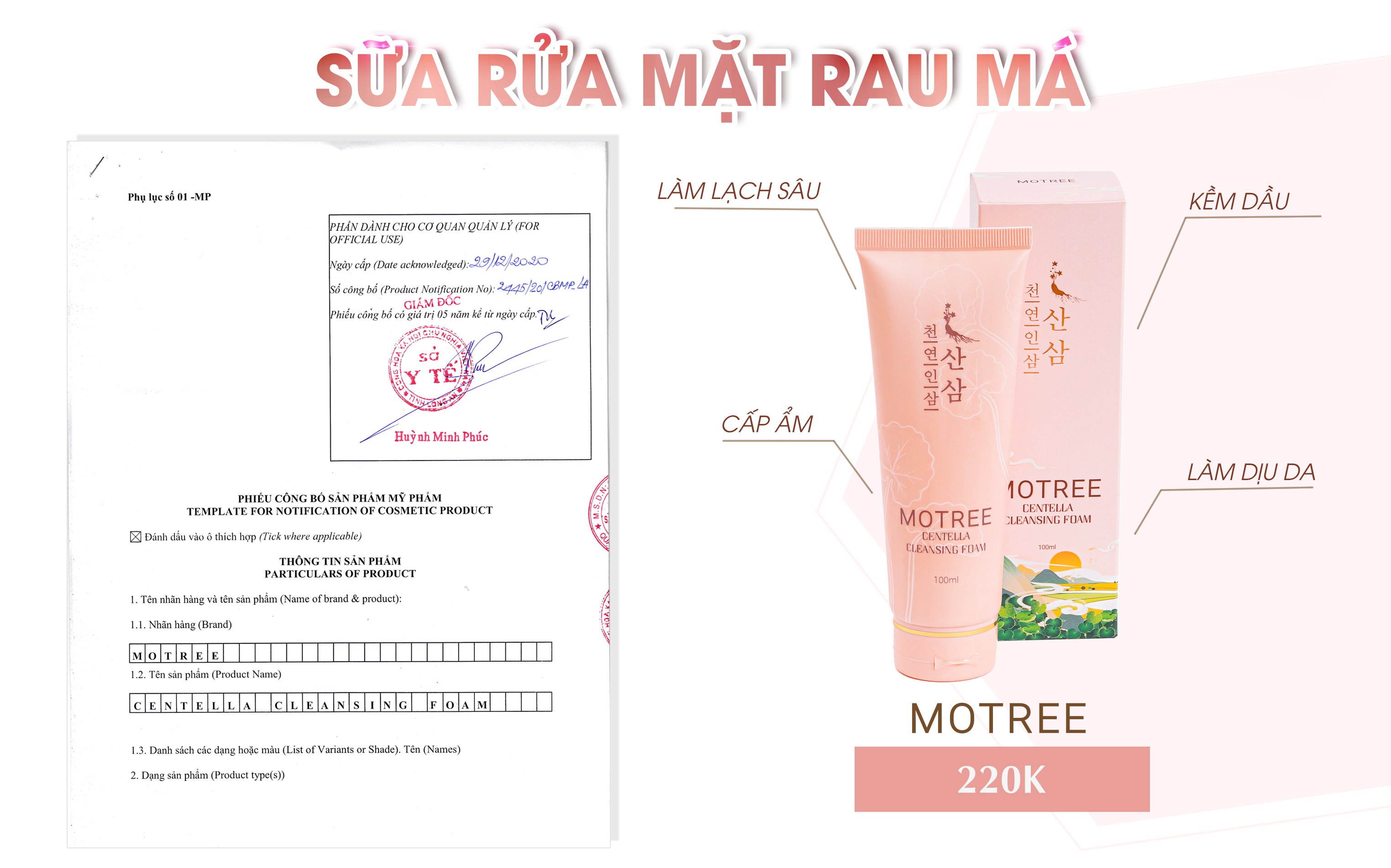 CÔNG DỤNG SỮA RỬA MẶT RAU MÁ SÂM MOTREE: